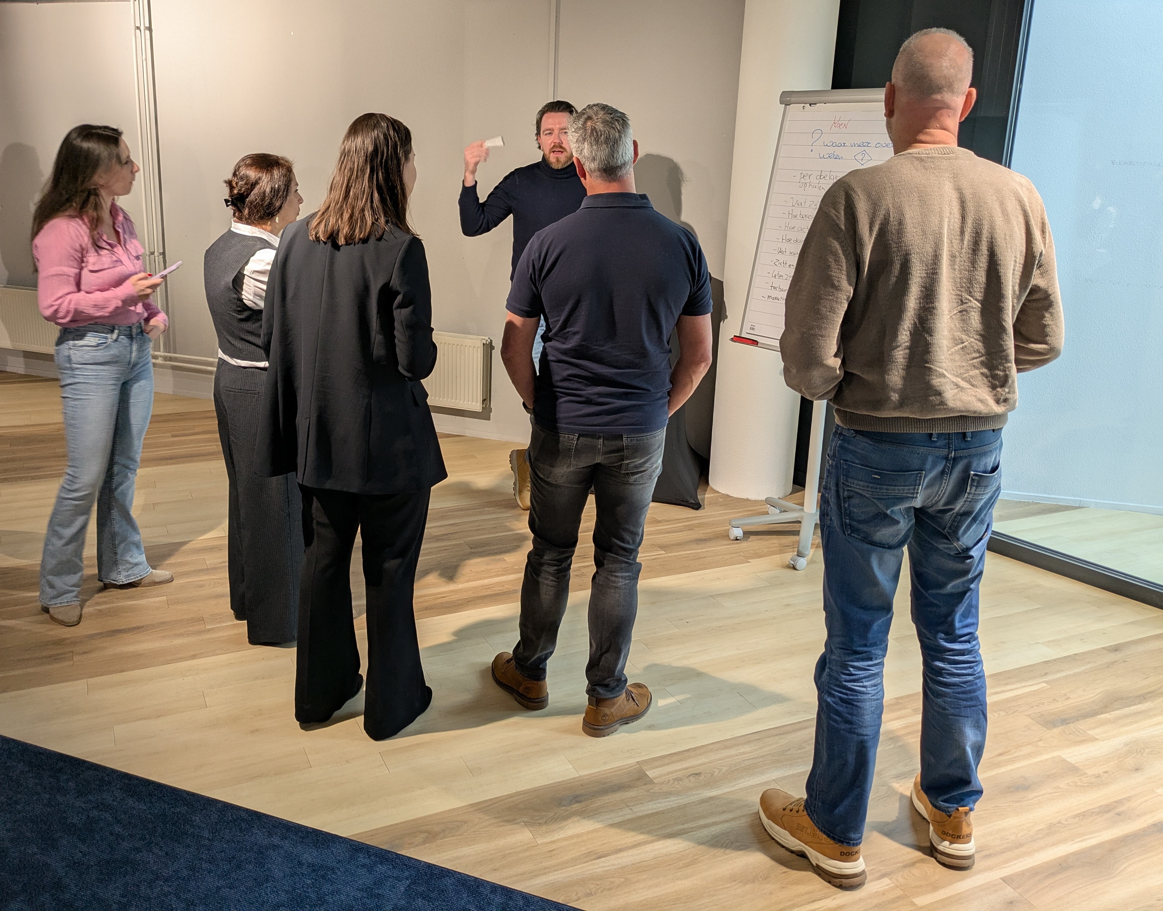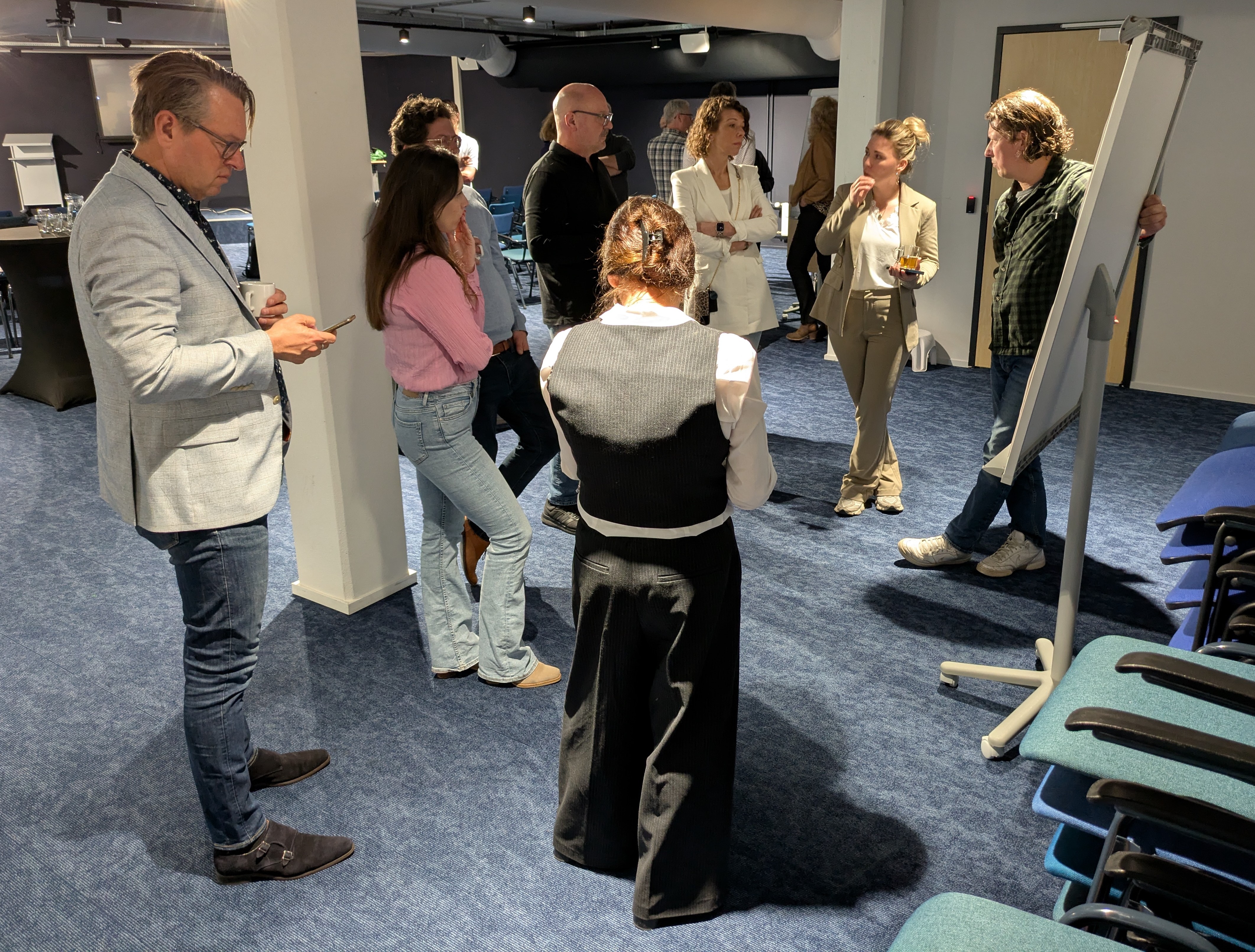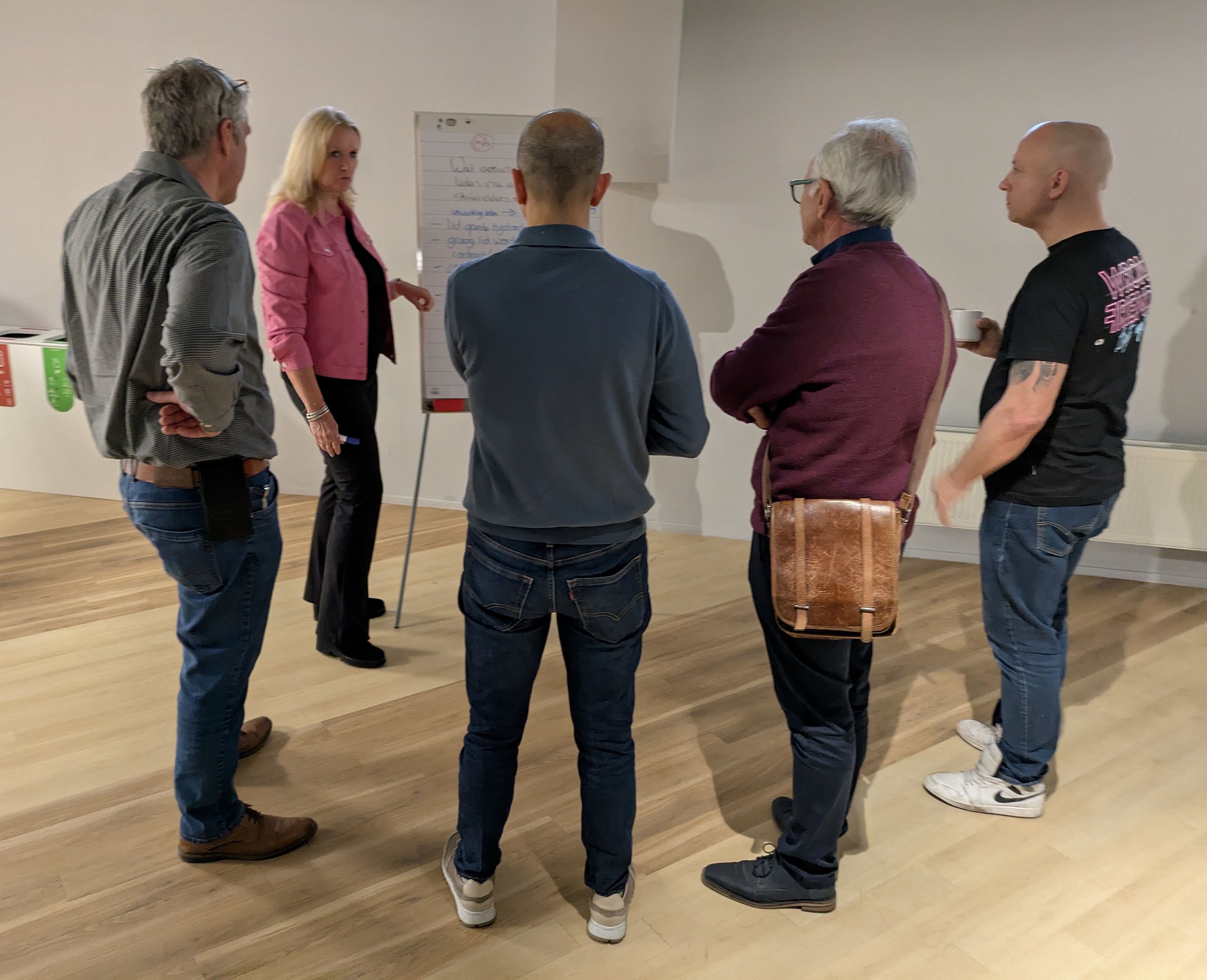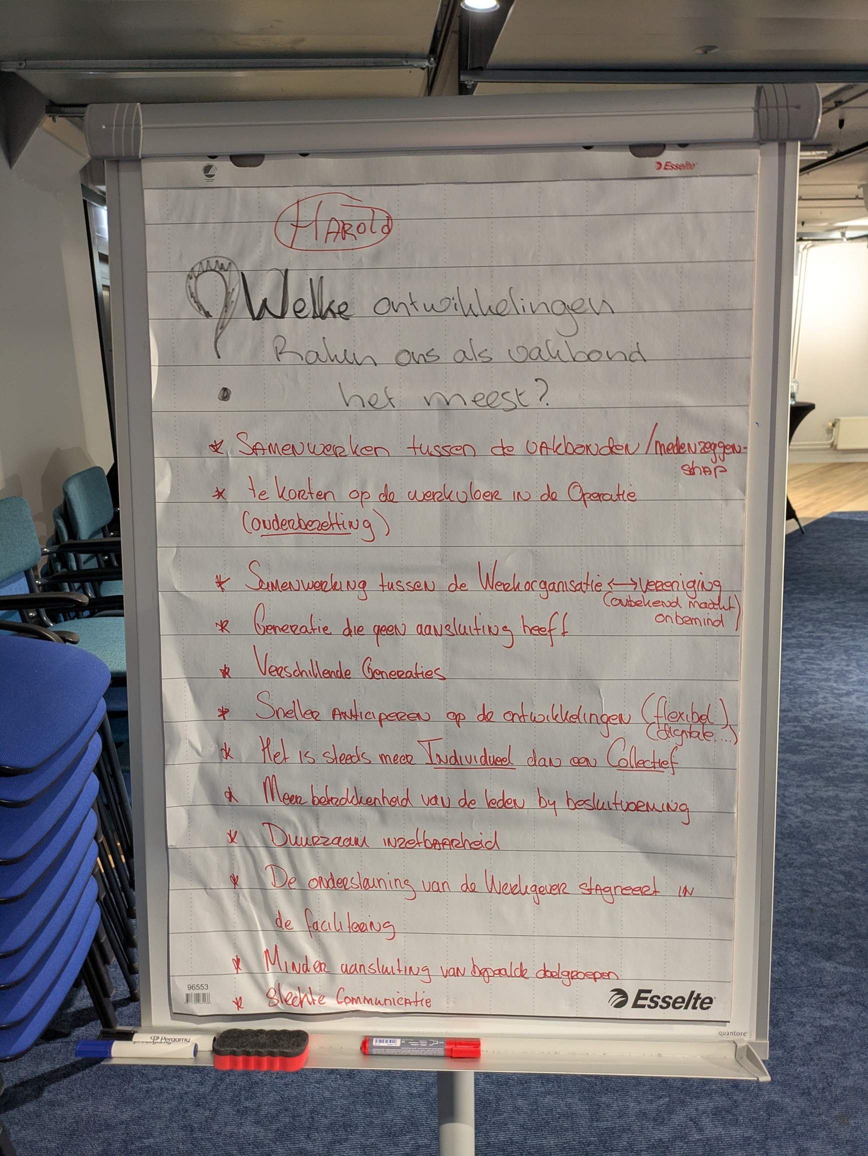 Daarna werden de deelnemers zelf aan het werk gezet. In de hoeken van de zaal had NPB-medewerker Rachid Zeddi vier flipovers geplaatst. Op elk bord stond een vraag en naast elk bord een onbezoldigde hoofdbestuurder. Het was de bedoeling dat onder de vraag antwoorden kwamen te staan, aangedragen door de aanwezigen en opgeschreven door de stiftvoerende hoofdbestuurder. De vier vragen luidden als volgt.