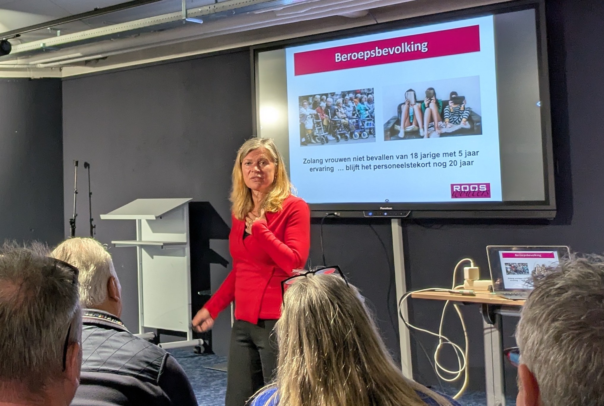 Het welkomstwoord van bondsvoorzitter Nine Kooiman werd gevolgd door een inspiratiesessie. Organisatieadviseur Roos Wouters vertelde de aanwezigen over ontwikkelingen op en rondom de arbeidsmarkt en de impact daarvan op organisaties en hun medewerkers.