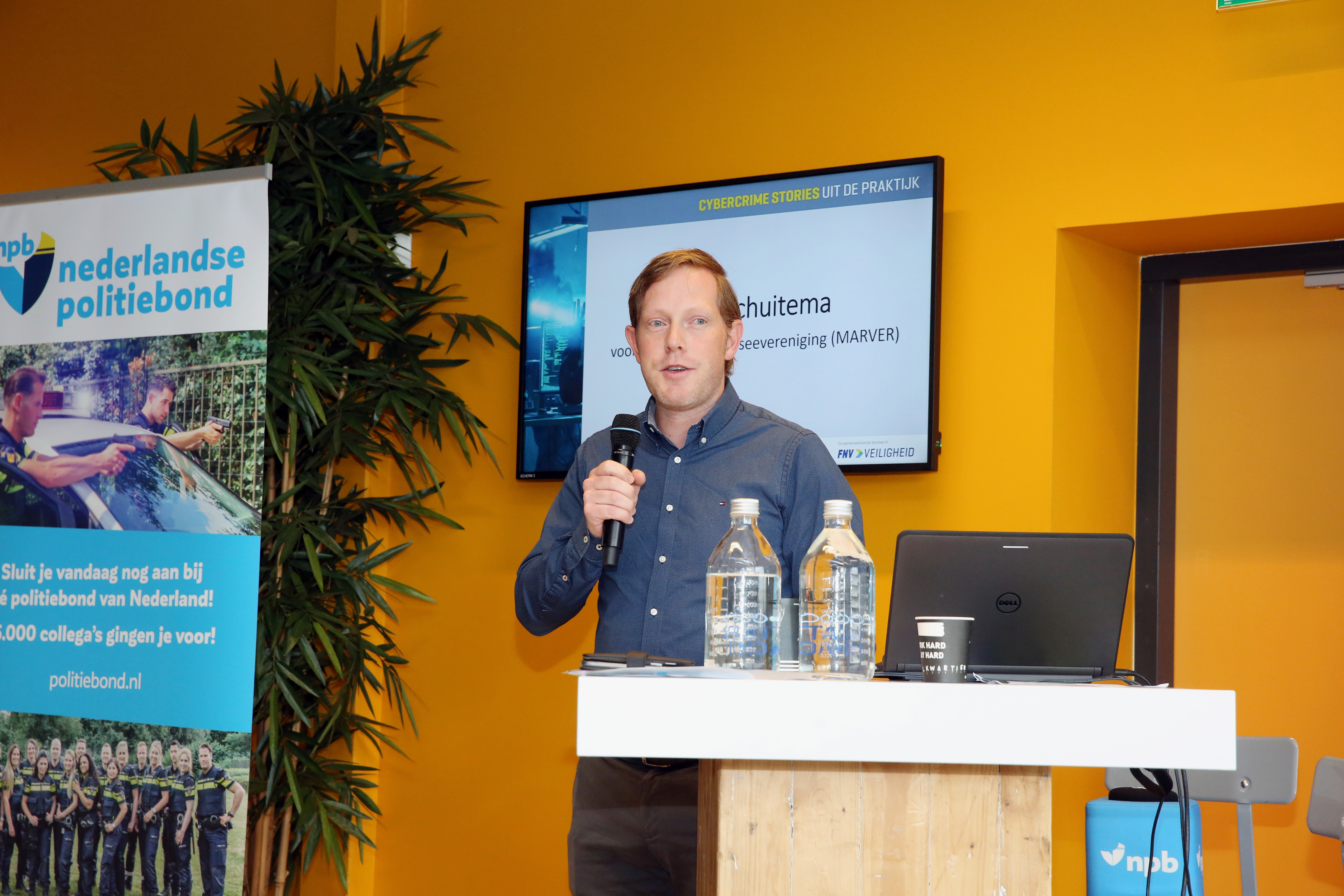 Sven Schuitema, voorzitter van de Marechausseevereniging trapte de themadag af. Hij was enthousiast over de grote belangstelling voor de themadag. “Het is duidelijk dat het thema cybercrime echt leeft onder politiemensen, de marechaussee en het personeel bij defensie. Als vakbonden willen wij een bijdrage leveren aan de verdieping van de vakkennis van de leden. Om je vak goed te kunnen uitvoeren zijn niet alleen goede arbeidsvoorwaarden nodig, maar dus ook deze kennis. Wat dat betreft is het onze ambitie als FNV Veiligheid om steeds meer rond het werk te organiseren. Dit mogen de leden van ons als moderne vakbond verwachten. Cyber bindt onze door alle lagen heen.”