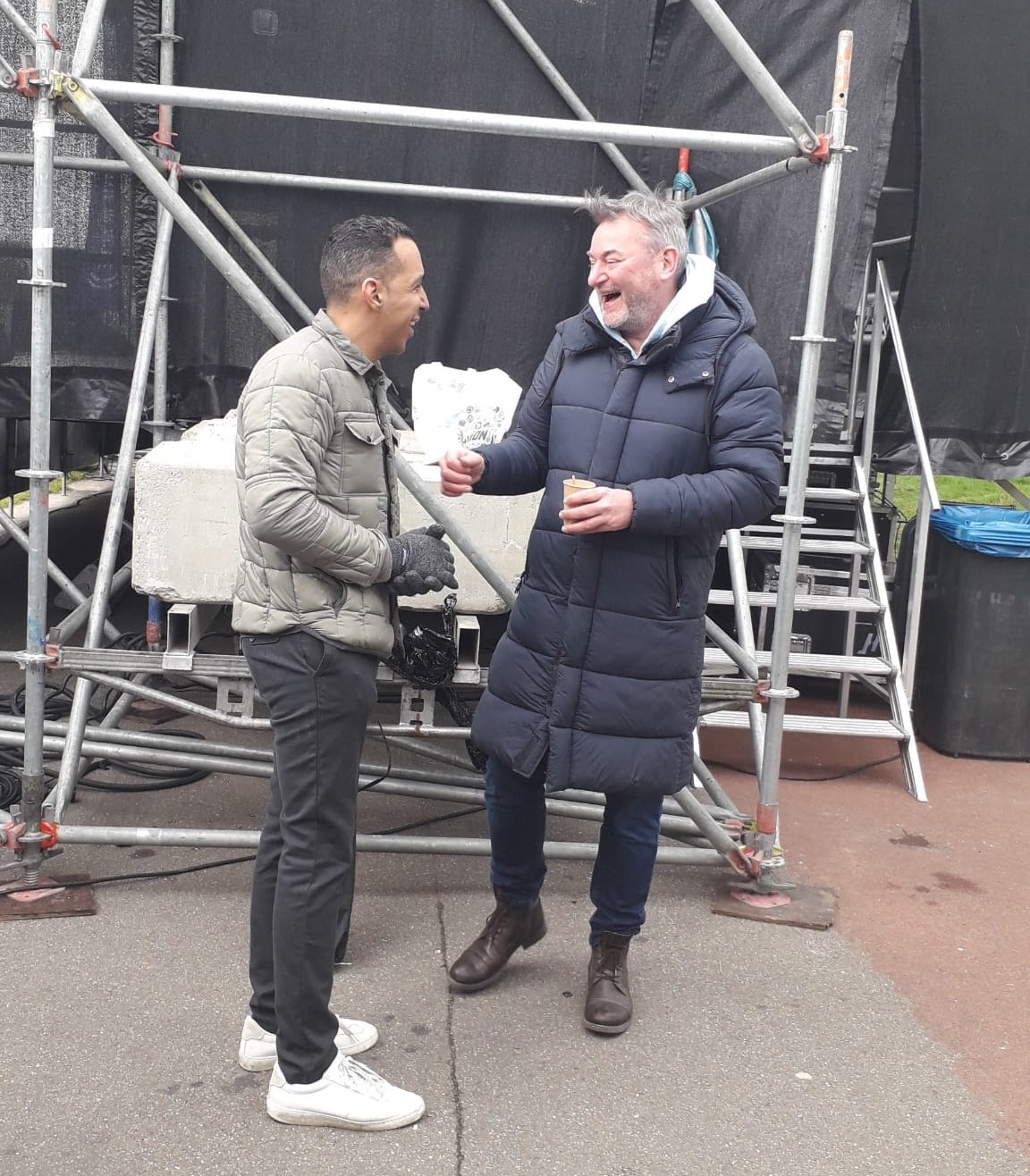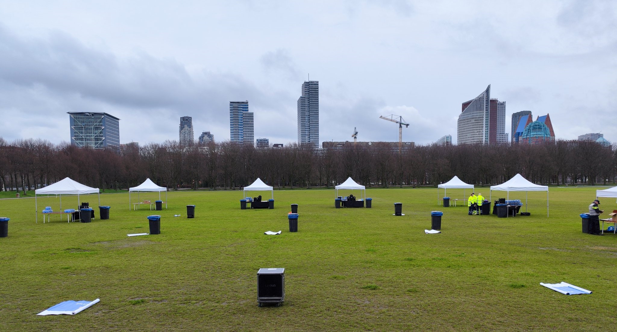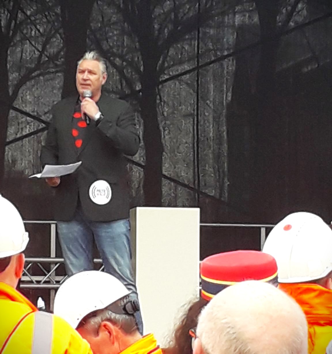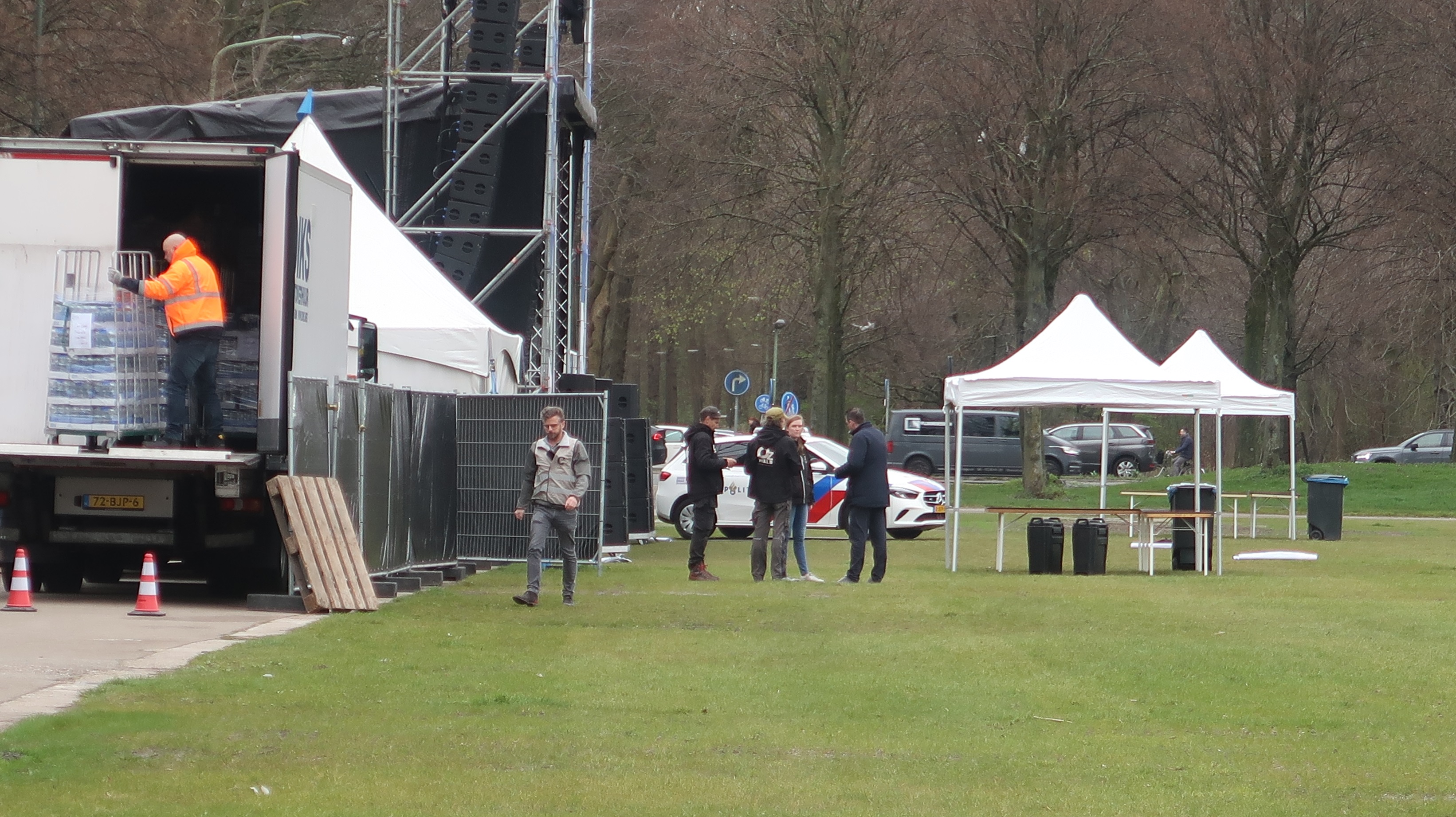 Dinsdag 26 maart: de opbouw van het actiepodium vordert gestaag.