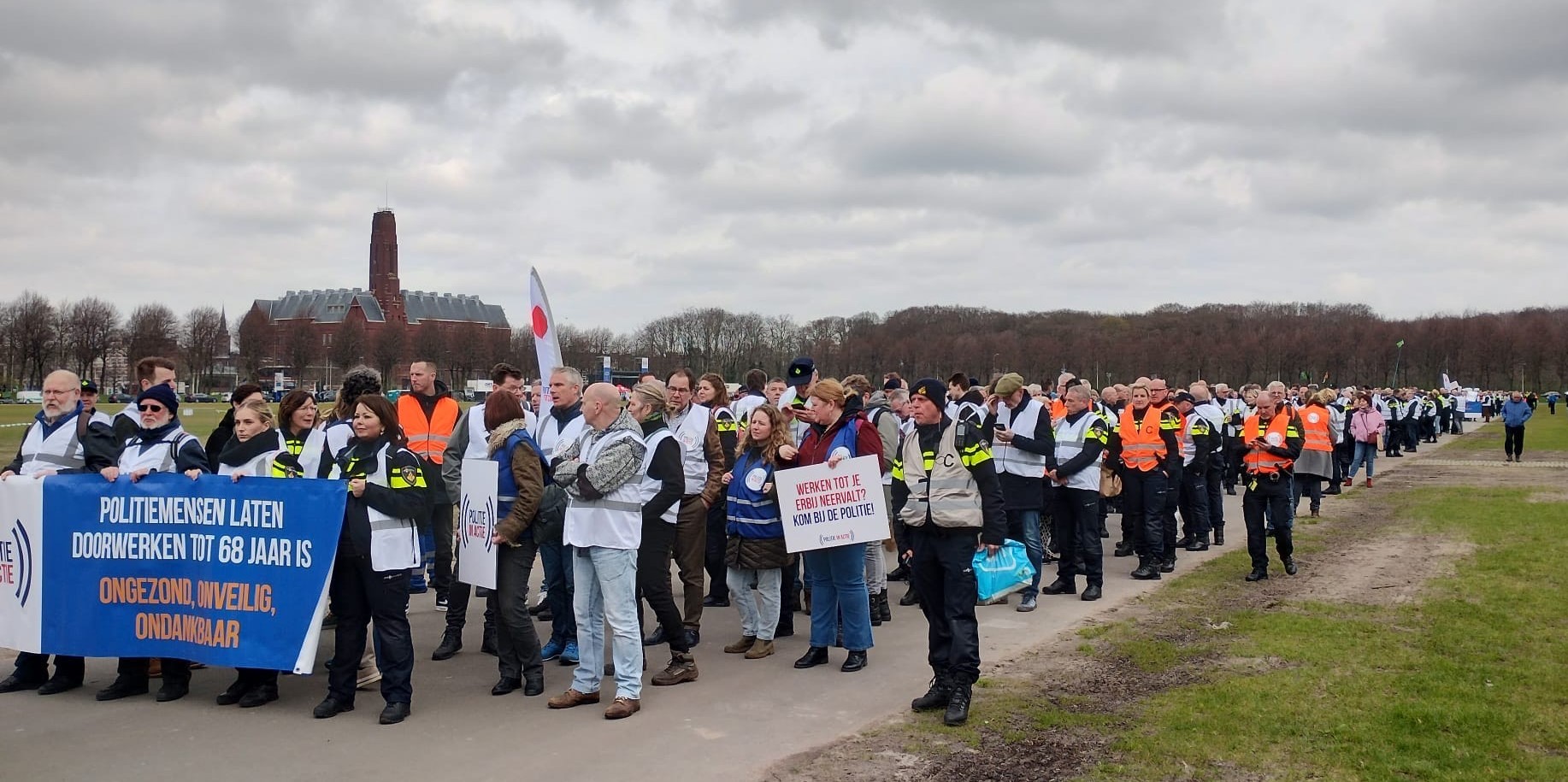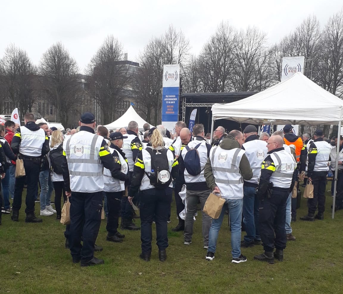 Op woensdag 27 maart demonstreerden 3.500 politiemedewerkers in Den Haag tegen de dreigende afschaffing van hun vroegpensioenregeling (RVU) vanaf 2026. De werkgevers blokkeren de onderhandelingen over een cruciale afspraak in het pensioenakkoord uit 2019. De politiek staat erbij en kijkt ernaar. Daar moet snel verandering in komen. Bekijk hieronder een LIVE BLOG van de actie.