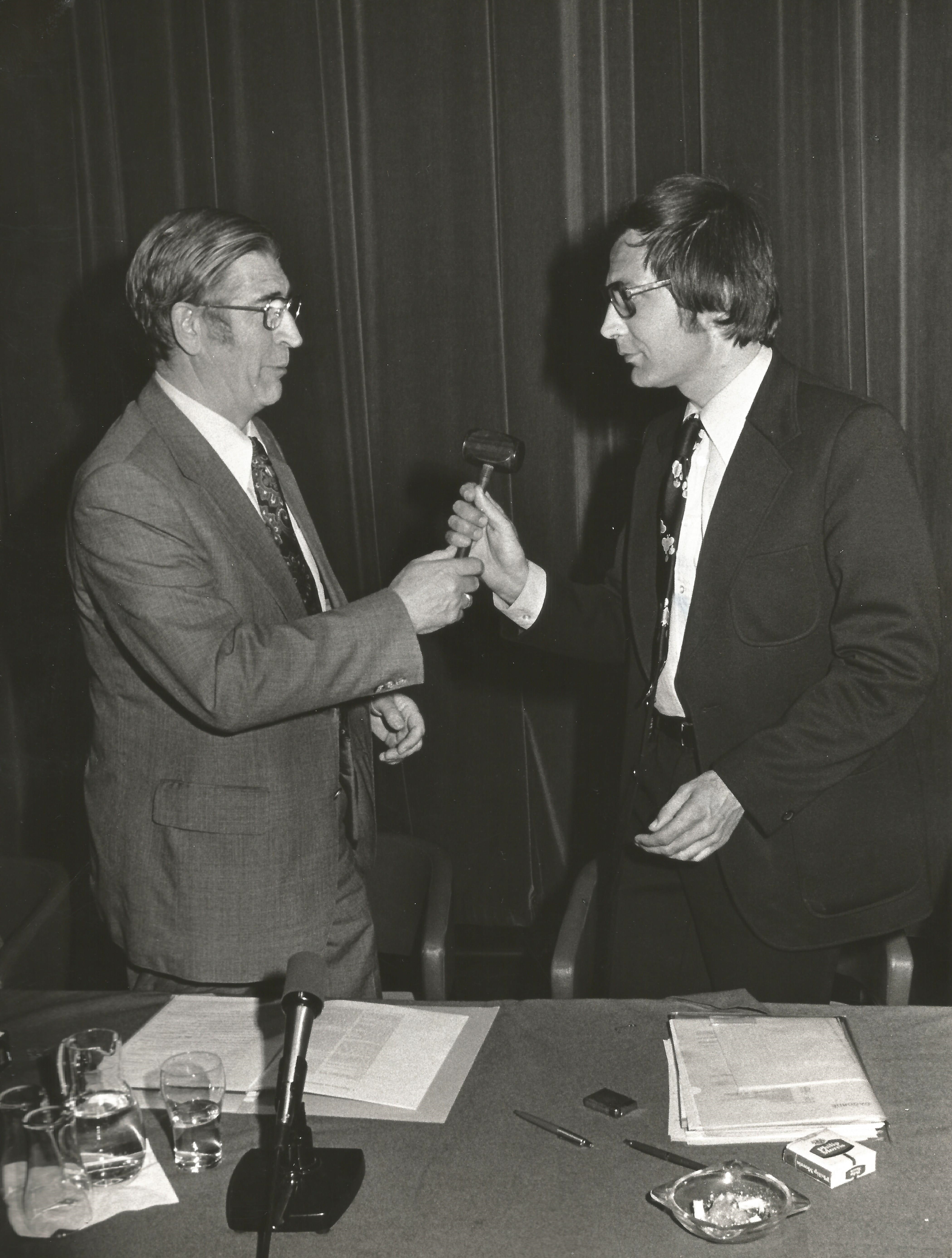 Uiteraard zal ook uitgebreid worden teruggekeken op historische prestaties en personen uit de NPB-geschiedenis, zoals de legendarische voorzitters Anton Mud en (zijn opvolger) Leen van der Linden – op de foto hieronder tijdens het NPB-congres in 1976.