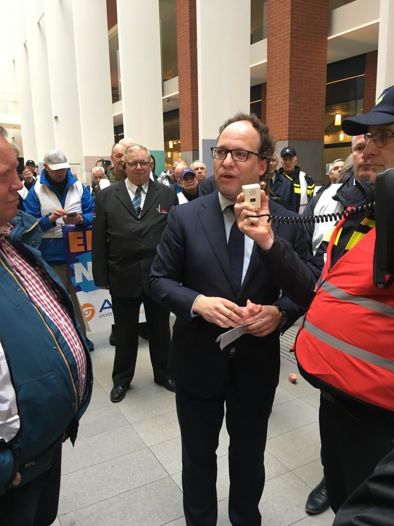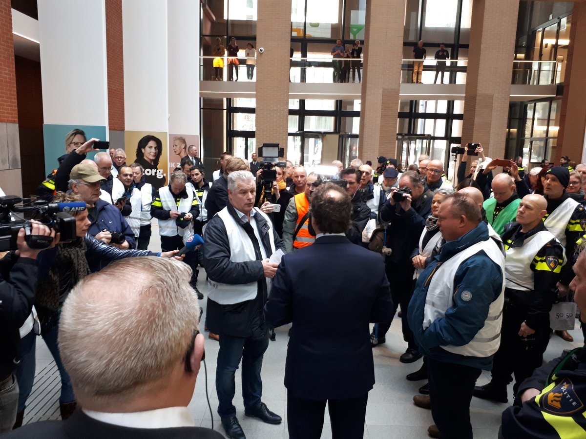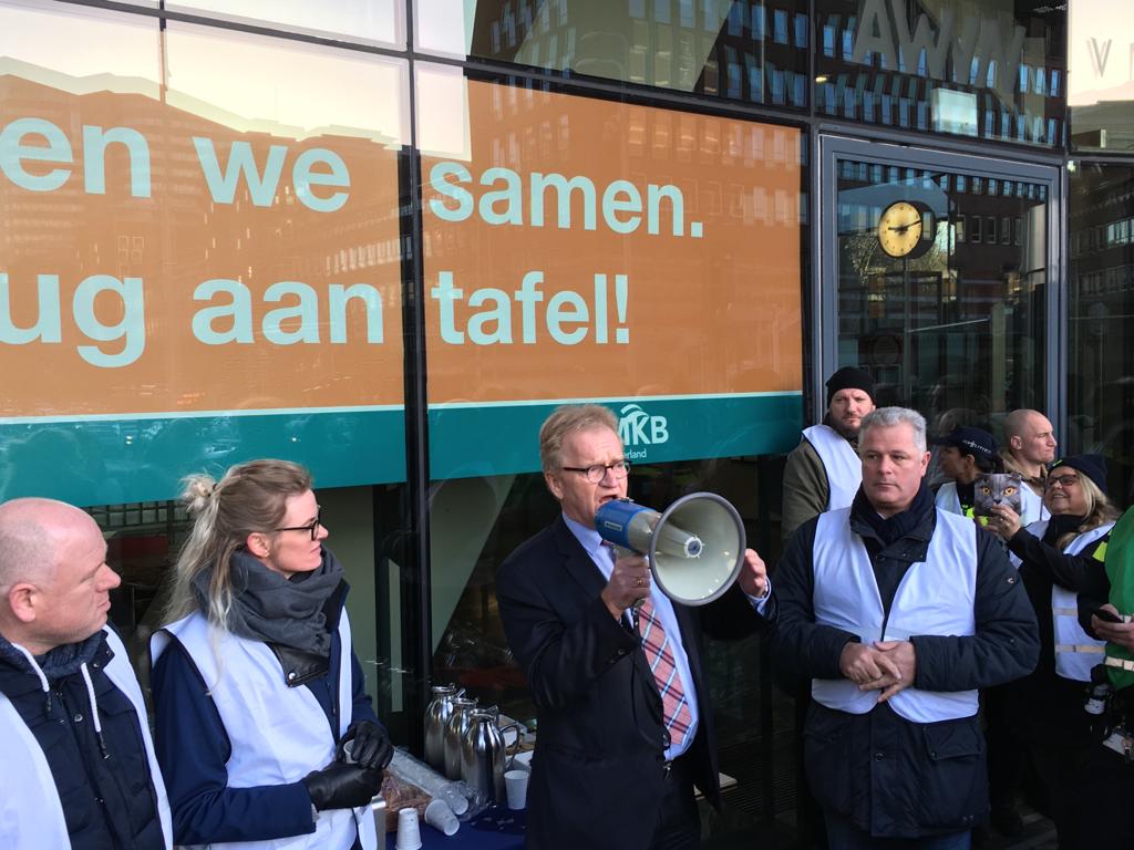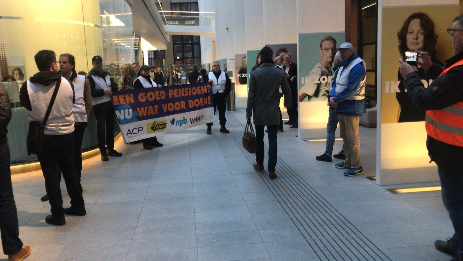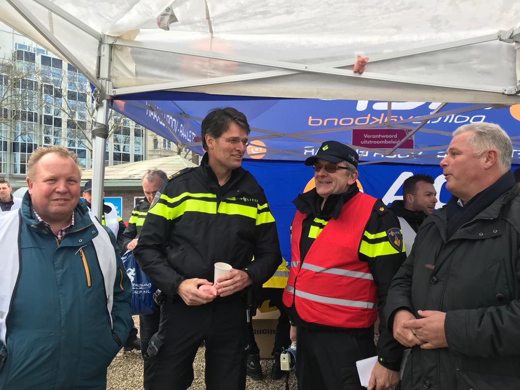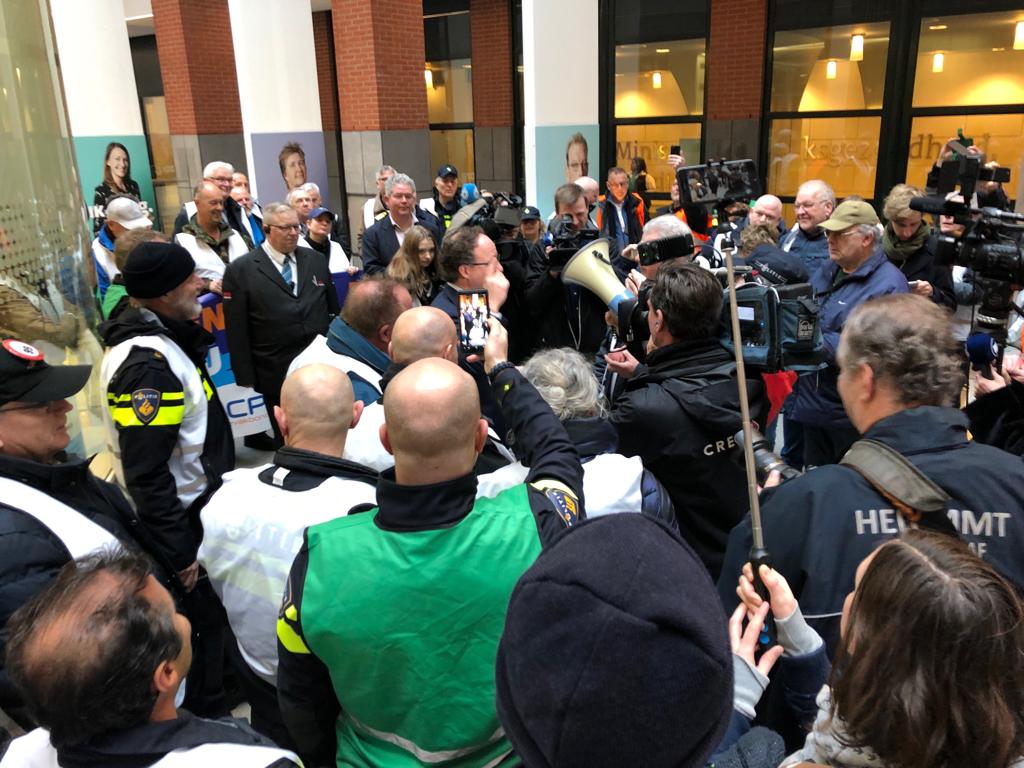 De politiebonden voerden vandaag gezamenlijk actie in Den Haag tegen het pensioenbeleid van het kabinet Rutte III. Het ministerie van Sociale Zaken en Werkgelegenheid EN het bolwerk van werkgeverskoepel VNO/NCW werden urenlang demonstratief geblokkeerd. BEKIJK de foto’s en de VLOG die NPB-bondssecretaris Nine Kooiman van de actie maakte!