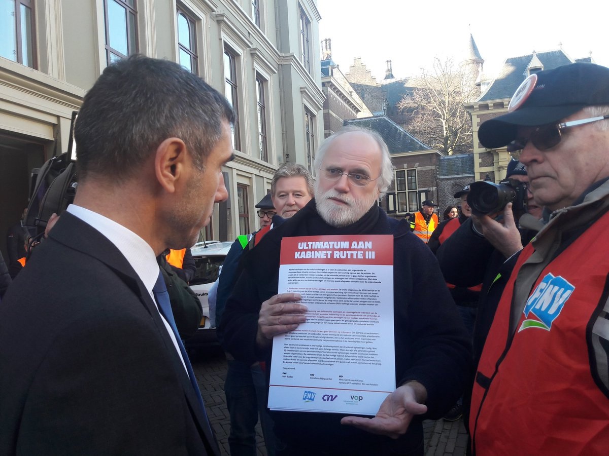 Actievoerders vroegen aandacht voor de schrijnende (vroeg)pensioenkwesties waarvoor dit kabinet weigert structurele oplossingen mogelijk te maken – zogenaamd omdat daarvoor GEEN GELD beschikbaar zou zijn.
