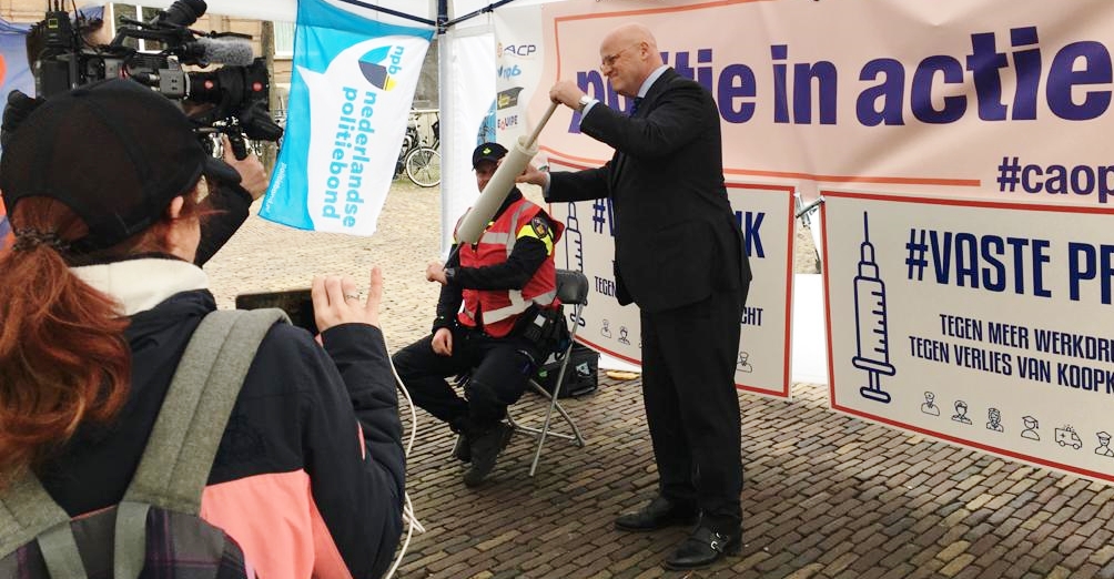 Vandaag voeren de politiebonden op het Plein in Den Haag actie voor serieuze investeringen in de arbeidsvoorwaarden en werkomstandigheden bij de overheid. In een symbolische prikstraat worden ministers aan de tand gevoeld over hun visie op de financiële injectie die de publieke sector zou moeten krijgen. Vakbonden voor medewerkers in de zorg, bij defensie, het onderwijs, het Rijk, de ambulancezorg en de brandweer zijn uitgenodigd bij deze actie aan te sluiten.