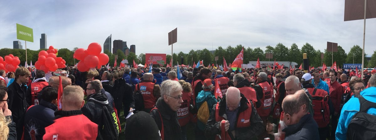Terug op het Malieveld sloot FNV-voorzitter Han Busker de demonstratie af. ‘De afgelopen jaren hebben de werkgevers en kabinetten heel veel van ons gevraagd. Er is keihard bezuinigd. En of je nou loon, een uitkering of pensioen krijgt, iedereen voelde dat in zijn of haar portemonnee. Maar de economie is opgebloeid en dus is het nu onze beurt. Het is tijd om te investeren in bijvoorbeeld de zorg, het onderwijs, vervoer en veiligheid. Lonen en uitkeringen omhoog, mensen moeten weer meer te besteden krijgen.’